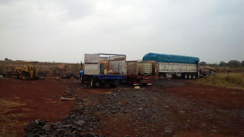 En el lugar también fue asegurada la camioneta Ford Pick up modelo 1987 color negro placas JR24071, y en su caja de carga, tres cisternas con residuos de hidrocarburo, así como un camión marca Famsa Torton Rabón color azul placas JH-65426, y en su caja de carga 8 tambos y un tinaco, todos vacíos.