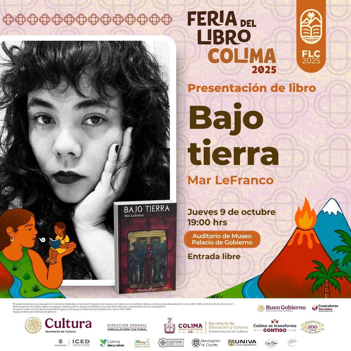 Además de ofrecer las novedades de sus amplios catálogos, algunas de estas editoriales presentarán sus publicaciones más recientes, como es el caso de Lapicero Rojo Editorial, que realizará la primera presentación oficial de ‘Bajo tierra’, un libro de cuentos de terror de la escritora jalisciense, radicada en Colima, Mar LeFranco, esto el jueves 9 a las 19:00 horas.