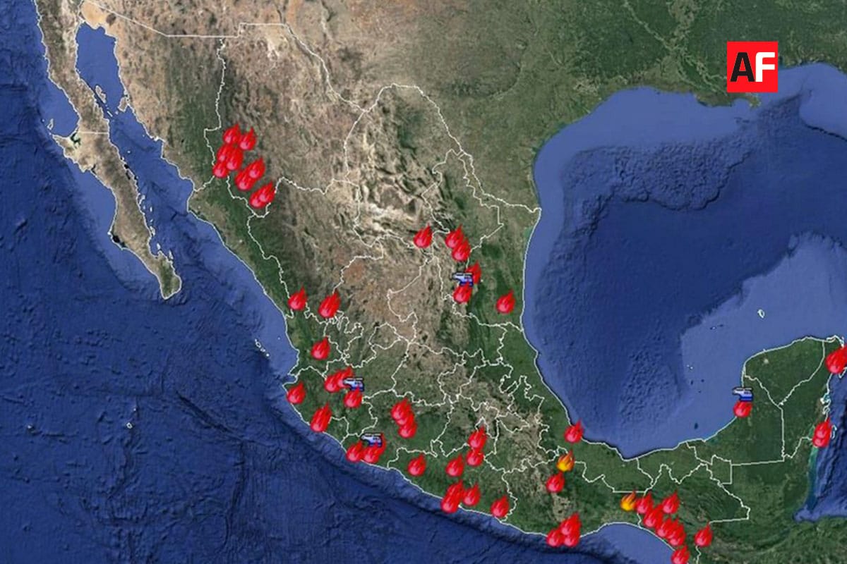 Ciudad de México.- La Comisión Nacional Forestal (Conafor) informa la situación de los incendios forestales en el país al 01 de mayo al corte de las 11:00 horas; al momento se registran 67 incendios forestales activos en 15 estados del país, con una superficie preliminar afectada de 42 mil 906 hectáreas.