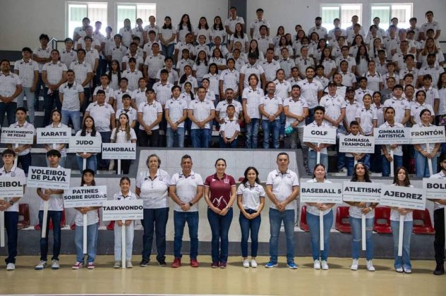 La nadadora Cecia Dueñas Castillo, medallista de oro en las pruebas de 100 y 200 metros de pecho en 2023, recibió el estandarte de Gobierno del Estado; Andrea Paola Gallardo Martínez, medallista de oro en la disciplina de frontón en los nacionales Conade 2022, porta el estandarte de la Secretaría de Educación y Cultura; Martín Tovar Ontiveros, seleccionado nacional de handball, recibió el estandarte de la Conade; Brayan Osvaldo Navarro González, seleccionado nacional de handball, se le dio el estandarte de Incode.