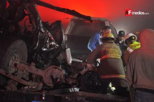 Mientras el chofer la camioneta Ford, blanca, con matrícula JF 62202, también de Jalisco, quedó prensado y murió de manera instantánea después del accidente. Otra persona más que iba a bordo de la pickup quedó sin vida sobre la cinta asfáltica,