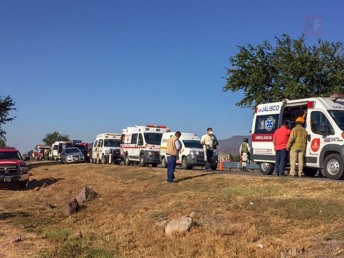 La Unidad Estatal de Protección Civil y Bomberos de Jalisco brindó apoyo en un accidente vehicular sobre la autopista Guadalajara-Colima, 5 kilómetros luego de la caseta de Acatlán, con saldo preliminar de 5 lesionados y dos personas fallecidas.