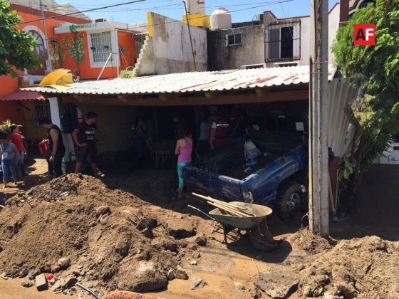 Manzanillo.- Al menos unas cincuenta viviendas resultaron invadidas por agua y lodo especialmente en las calles Júpiter y De Las Garzas, ésta última la que registró los mayores daños por la tormenta de la madrugada de ayer miércoles 16 de septiembre de acuerdo a datos obtenidos por AFmedios.