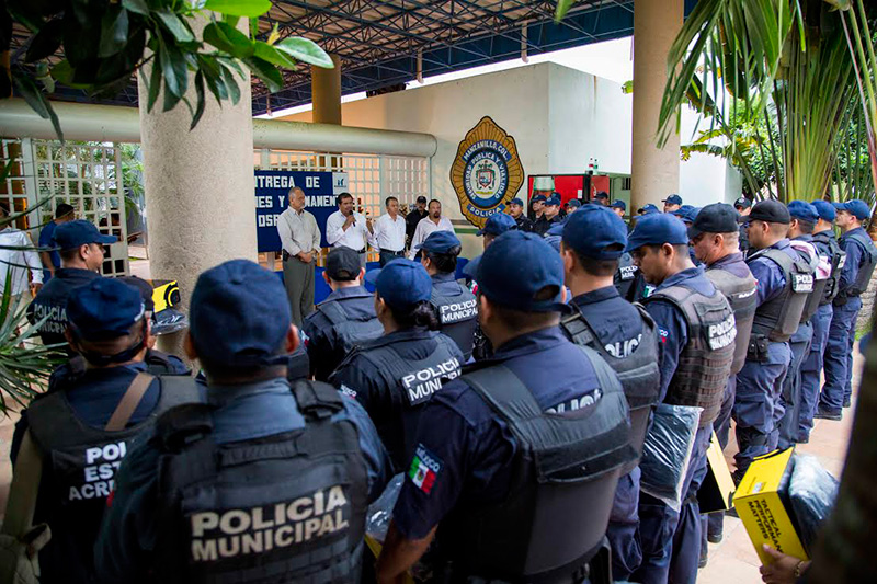 Manzanillo.- El Presidente Municipal de Manzanillo, Antonio Álvarez Macías, entregó a los policías y agentes de tránsito, uniformes y equipo, con una inversión superior a los 2.7 millones de pesos, con recursos del Subsemun.