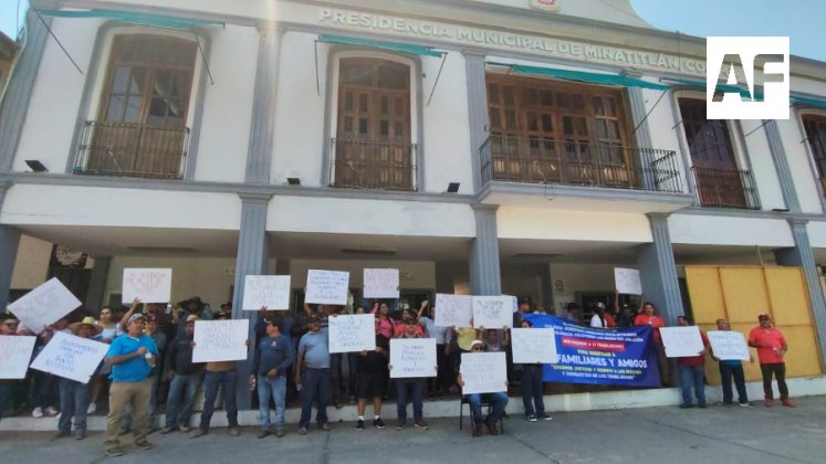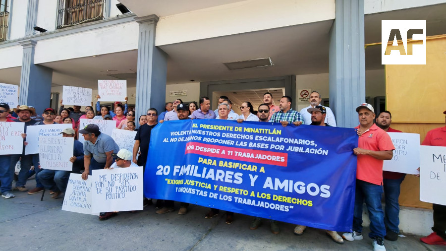 Minatitlán.- Trabajadores del Ayuntamiento de Minatitlán se manifestaron este jueves por la tarde al exterior de la presidencia municipal para exigir al presidente municipal, Alejandro Cicerón Mancilla González, a quien acusaron de despedir injustificadamente a once trabajadores sindicalizados, para basificar a veinte familiares.