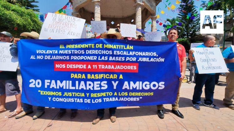 Con pancartas que señalan: “Alejandro Mancilla represivo y vengativo”, “´Presidente no expongas al pueblo a pagar salarios vencidos”, “Me despidieron por no ser de su equipo político”, entre otros, J. Jesús Verduzco González, secretario general del Sindicato del Ayuntamiento de Minatitlán exigió respeto a los derechos laborales, mismos han sido violentados.