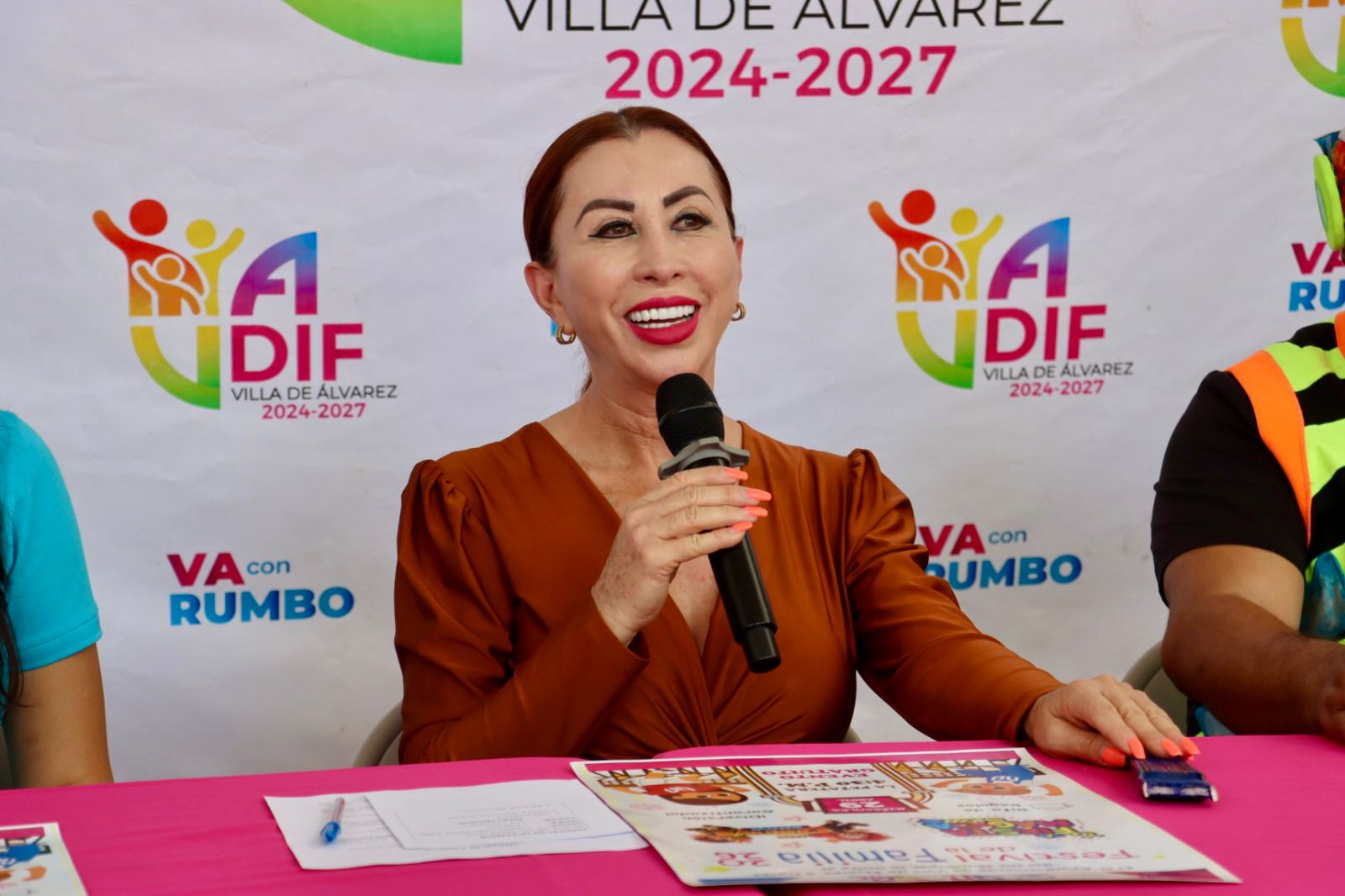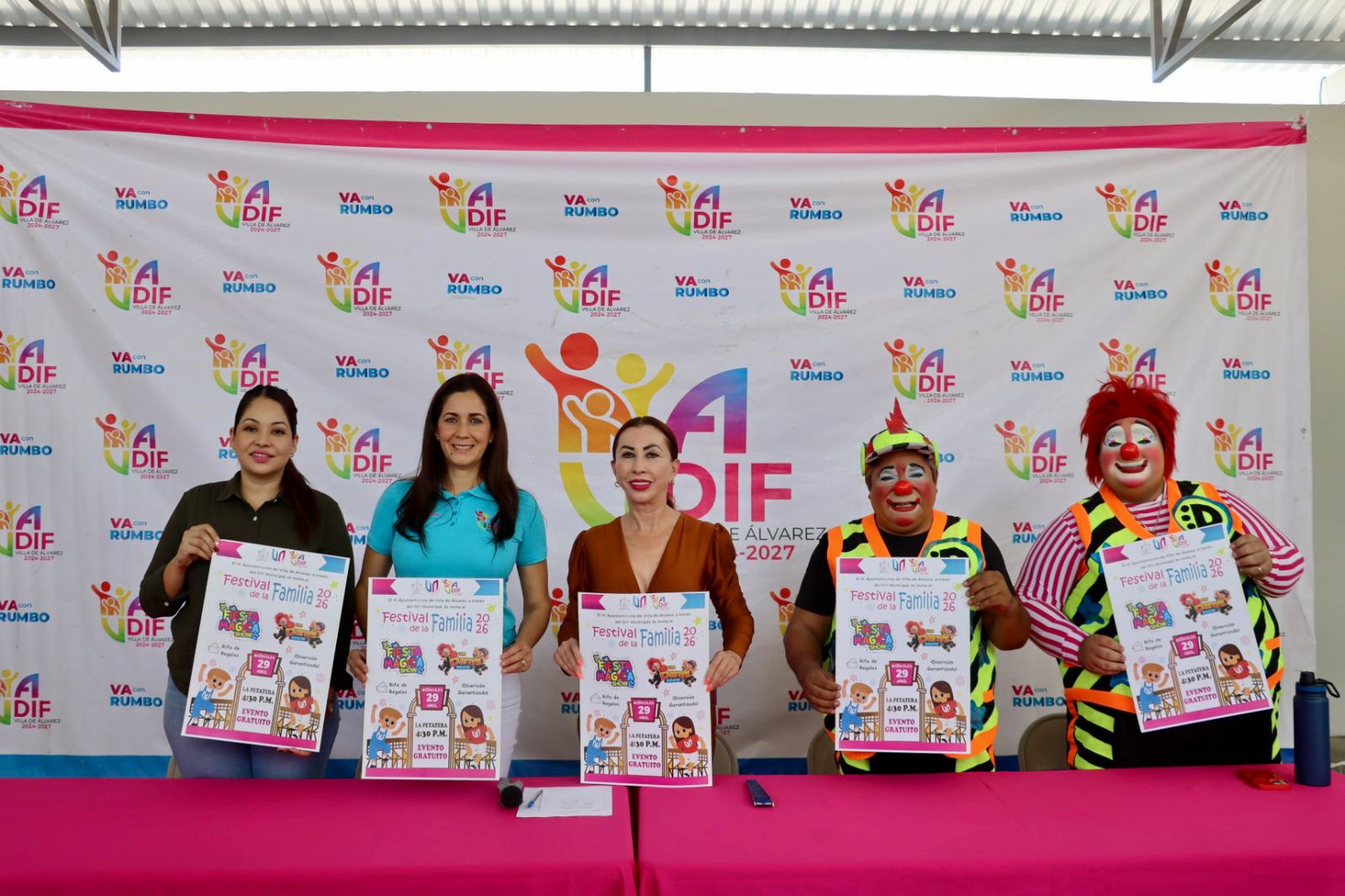 En la conferencia de prensa acompañaron a la Presidenta Tey Gutiérrez la Directora del DIF de Villa de Álvarez, Martha Yadira Martínez; la Coordinadora del Voluntariado del DIF Municipal, Cinthya Vinaja, y los payasos Los Danys.