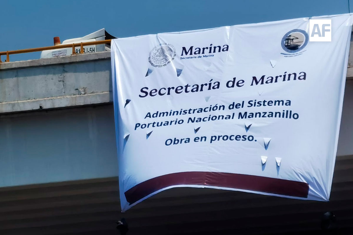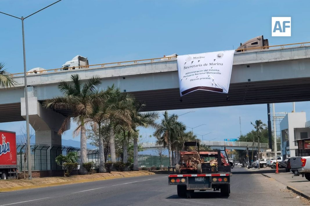 «Secretaría de Marina. Administración del Sistema Portuario Nacional Manzanillo. Obra en proceso».