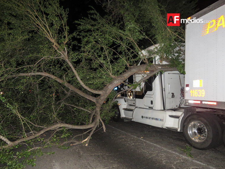 Colima.- Al rededor las 20:00 horas de este jueves 27 de octubre, a un tráiler que transitaba en el Boulevard Camino Real le cayó un árbol.
