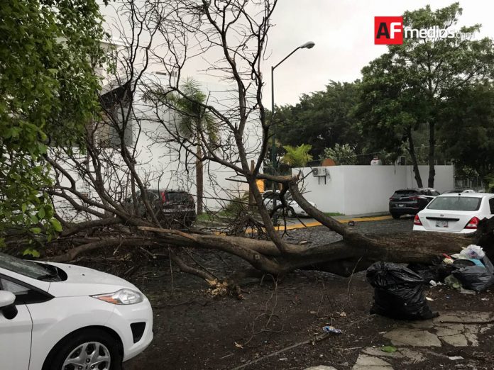 El paso de la tormenta en el municipio de Colima, originó la caída de árboles, en la calle Jilguero, en residencial Santa Bárbara y también dejó sin funcionar algunos semáforos.