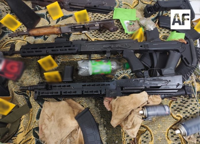 De acuerdo con el informe oficial, en Tecomán elementos de la Fiscalía General de la República (FGR), la Secretaría de Seguridad y Protección Ciudadana (SSPC) y la Secretaría de Marina (Semar) catearon un inmueble donde aseguraron ocho armas largas, cartuchos, dos cargadores, dos detonadores y siete radios de comunicación, además del aseguramiento del propio inmueble.