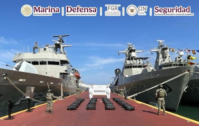 La acción se llevó a cabo en coordinación con la Secretaría de la Defensa Nacional (Sedena), la Fiscalía General de la República (FGR), la Guardia Nacional (GN) y la Secretaría de Seguridad y Protección Ciudadana (SSPC), con apoyo de un buque y una aeronave.