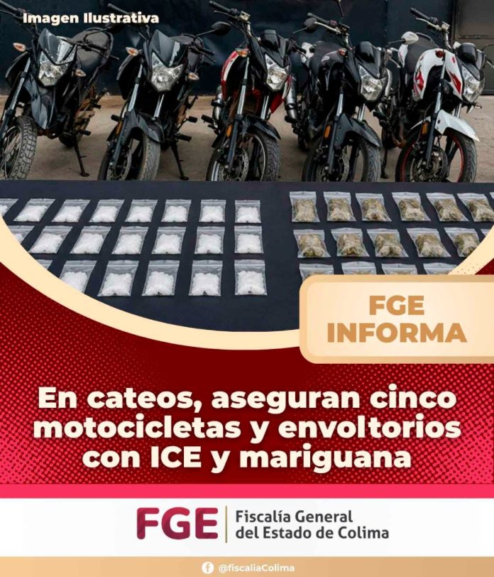 Aseguran cinco motocicletas y envoltorios con ICE y mariguana