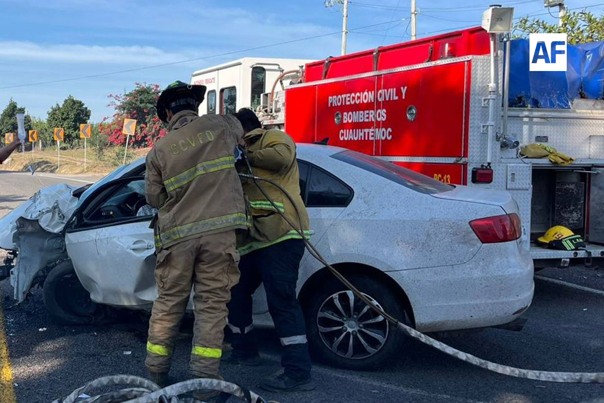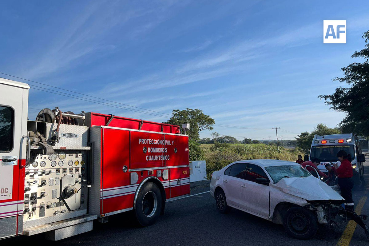 CUAUHTÉMOC.- Elementos de Protección Civil y Bomberos de Cuauhtémoc acudieron a un hecho de tránsito ocurrido sobre la carretera Guadalajara–Colima, a la altura de El Trapiche, donde un joven de 22 años quedó atrapado dentro de la unidad involucrada.