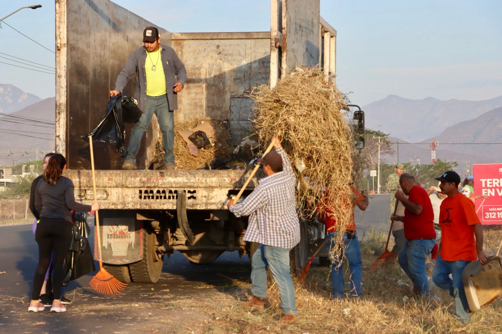 Trabajadores sindicalizados y funcionarios municipales, apoyados por efectivos de la Secretaría de la Defensa Nacional y por vecinas y vecinos, limpiaron 1.2 kilómetros de la carretera Villa de Álvarez-Minatitlán, desde la colonia Acueducto hasta la colonia Vista Volcanes, donde se reritaron más de 14 toneladas de maleza, cacharros, ramas y basura.