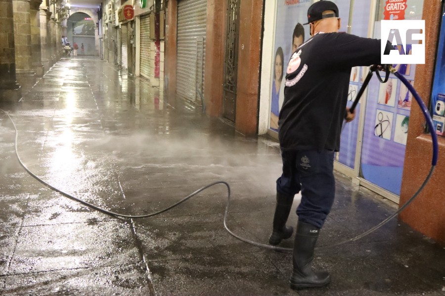 Detalló que alrededor de 100 personas laboran cada noche con el objetivo de abarcar el mayor número de espacios públicos posibles. Como ejemplo, mencionó el hidrolavado masivo realizado en el Centro Histórico, particularmente en la Cruz de Plazas, donde participaron cerca de 120 trabajadores municipales.