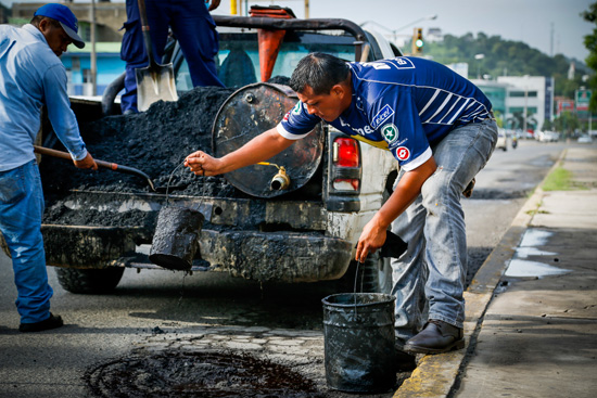 Detalló que por el momento se dificulta el realizar los trabajos con chapopote debido a que algunas vías aún presentan humedad, lo que dificulta el sellado correcto del material.
