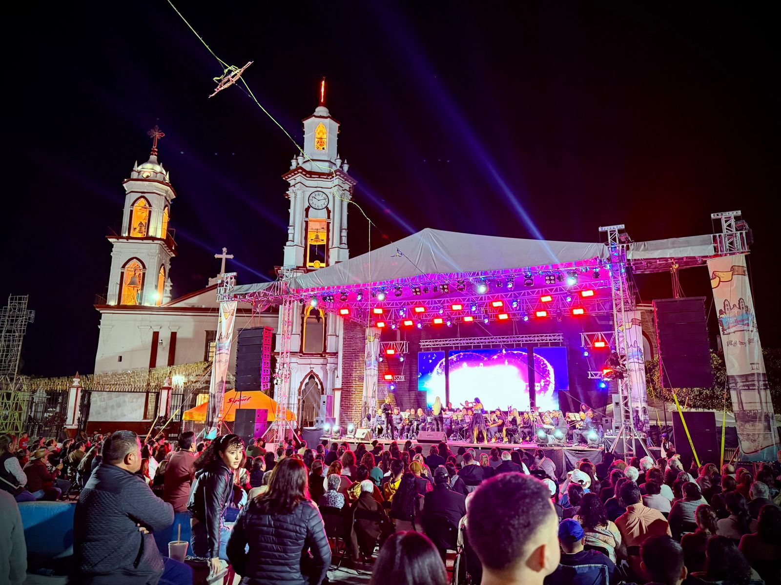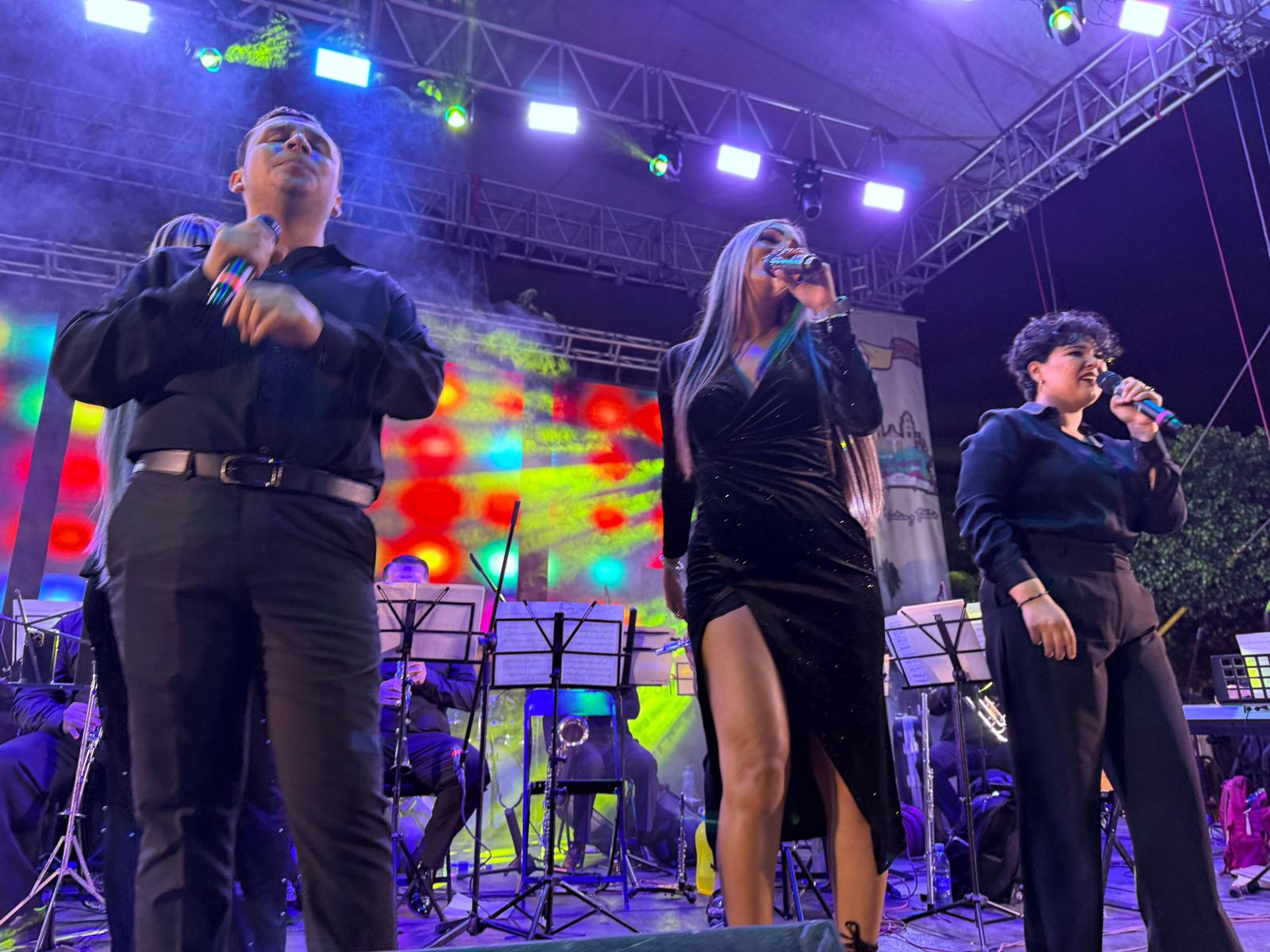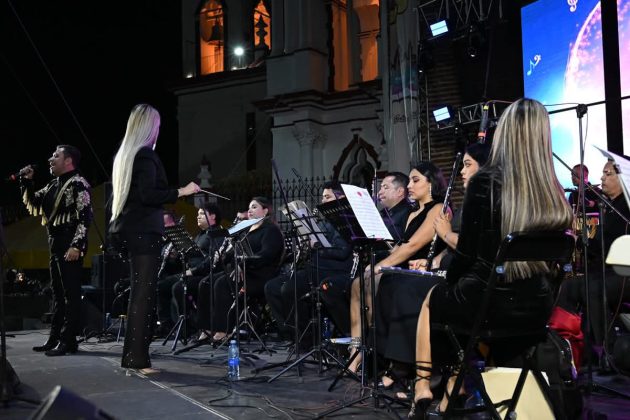 La Banda Sinfónica, dirigida por Perla Cortés Castillo, subió al escenario de la plaza ‘Juan Rulfo’ para presentar su ‘Homenaje al Divo de Juárez’ que permitió al público disfrutar canciones de la música popular mexicana como ‘Hasta que te conocí’, ‘Amor eterno’ y ‘Por qué me haces llorar’, en voz de las y los cantantes Josué Esaú, Karla Verónica, Alelí López, Yunuén Cortés y Alejandra Espino. Este concierto es el segundo que ofrece la agrupación en San Gabriel, municipio que oficializó su hermanamiento con Comala en 2025.