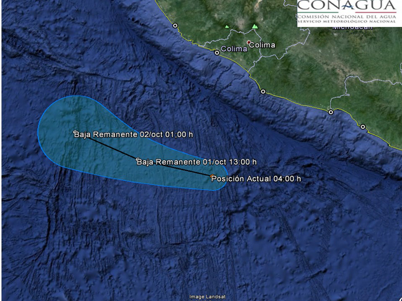 Colima.- El Servicio Meteorológico Nacional (SMN) ha informado que la depresión tropical “Marty” se ha debilitado a baja remanente, localizándose al sur de Colima y Michoacán aproximadamente a 205 kilómetros al sur-suroeste de Punta San Telmo, Michoacán.