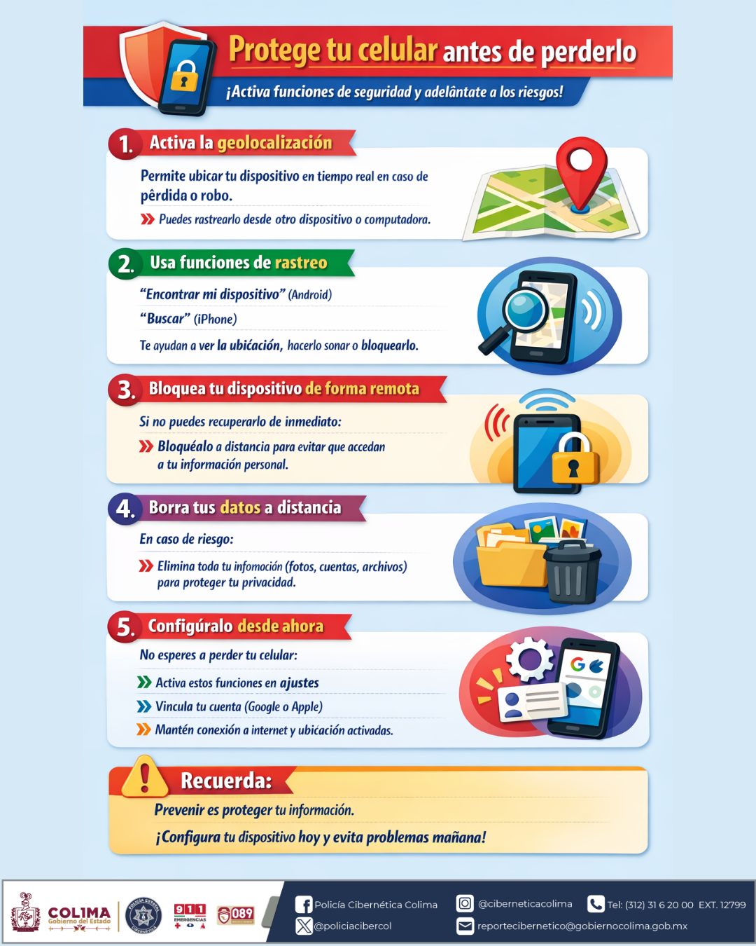 COLIMA.- En un esfuerzo por mitigar los riesgos asociados al robo y extravío de equipos de comunicación personal, la Policía Cibernética de la Secretaría de Seguridad del Estado de Colima ha emitido una serie de recomendaciones oficiales destinadas a fortalecer la protección de datos sensibles.