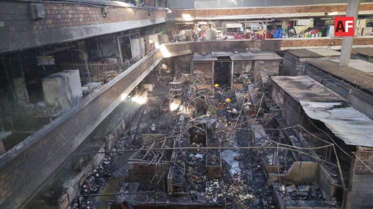Guadalajara.- Oficiales de Protección Civil Jalisco en coordinación con Guardia Nacional (GN);Servicios Médicos Municipales; Cruz Roja; Sistema de Atención Medica de Uregencia (SAMU) ; así como elementos de Protección Civil de, Guadalajara, Tonalá, Tlaquepaque, Tlajomulco y Zapopan lograron contener el incendio que inició al rededor de las 2:30 de la mañana en el Mercado de San Juan de Dios.