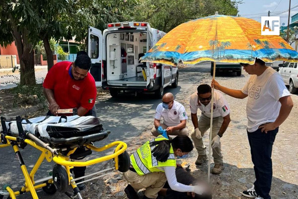 Paramédicos acudieron al lugar para brindar atención prehospitalaria al lesionado, quien presentó heridas en el rostro, así como posibles lesiones en tibia y peroné.