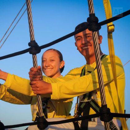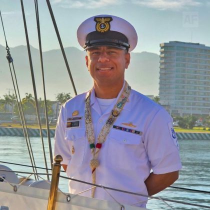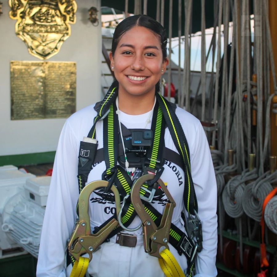 Durante el arribo, una de las cadetes destacó de manera especial: la Guardiamarina Juliana Collazos, quien obtuvo el primer lugar en la pierna de navegación entre San Diego y Puerto Vallarta. Gracias a su desempeño, tuvo el honor de ingresar como galletera al puerto, una distinción que representa esfuerzo, disciplina y orgullo naval.
