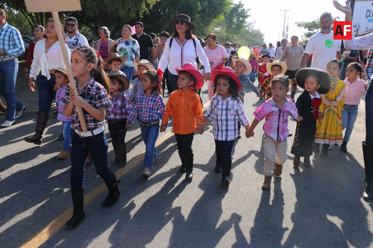 Papás acompañaron a sus hijos, que iban dirigidas por sus maestras, maestros y docentes de los distintos centros educativos del municipio.