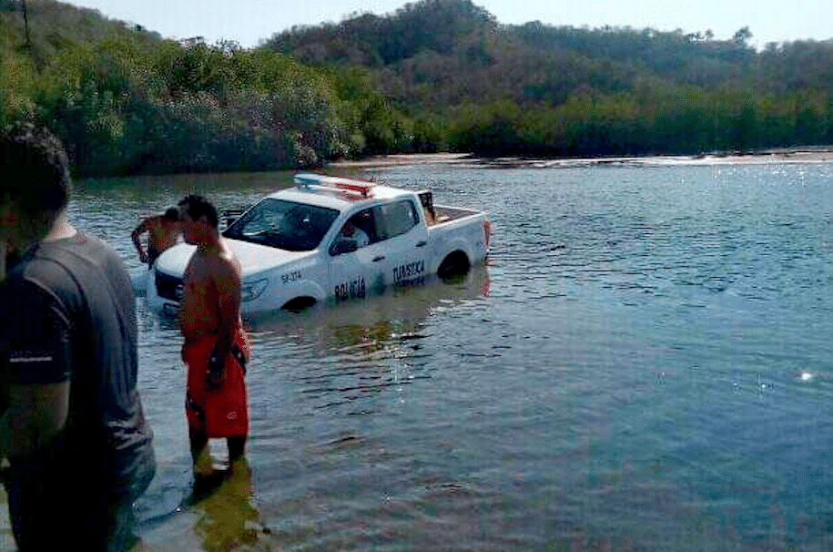 Manzanillo.- Una camioneta de la Policía Turística de Manzanillo quedó hundida en la Laguna de Juluapan, contigua a playa La Boquita, la tarde de este lunes 16 de marzo y aunque no se Reportan lesionados se considera que el incidente generará cuantiosas pérdidas materiales de acuerdo a fuentes policiales.