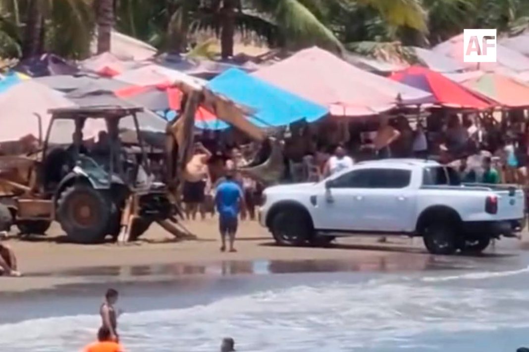 Los hechos fueron reportados poco después del mediodía en el sitio en mención, desconociéndose como la unidad tipo pick up terminó sobre la rompiente del oleaje en dicha playa.