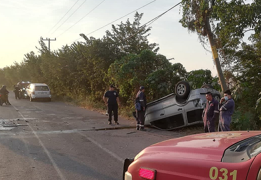 Según los primeros informes la camioneta gris habría invadido el carril contrario causando el fuerte choque que provocó que la misma resultara volcada, al lugar acudieron unidades de Cruz Roja quienes atendieron a un lesionado en el lugar y Policía Municipal de Colima.