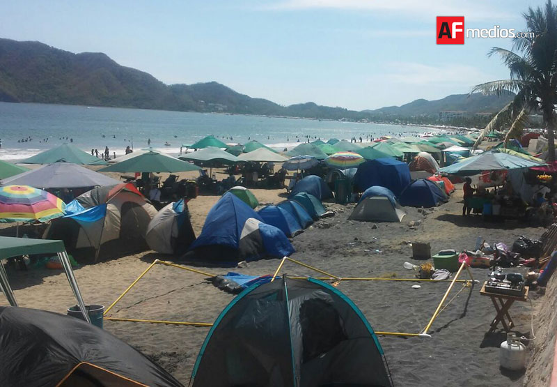 Manzanillo.- Algunos vacacionistas aprovechan las áreas acondicionadas para acampar en la Playa Miramar, en Manzanillo.