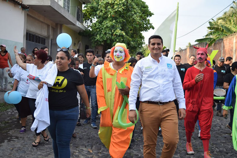 Villa de Álvarez.- El candidato del PRI-PVEM-PANAL a la presidencia municipal de Villa de Álvarez, Oswy Delgado Rodríguez, ha recorrido durante esta semana las colonias Rancho Blanco, San Isidro y Liberación con caminatas en forma de carnaval con las que muestra la cercanía y alegría con las que ha desarrollado su campaña hasta el momento. BP.