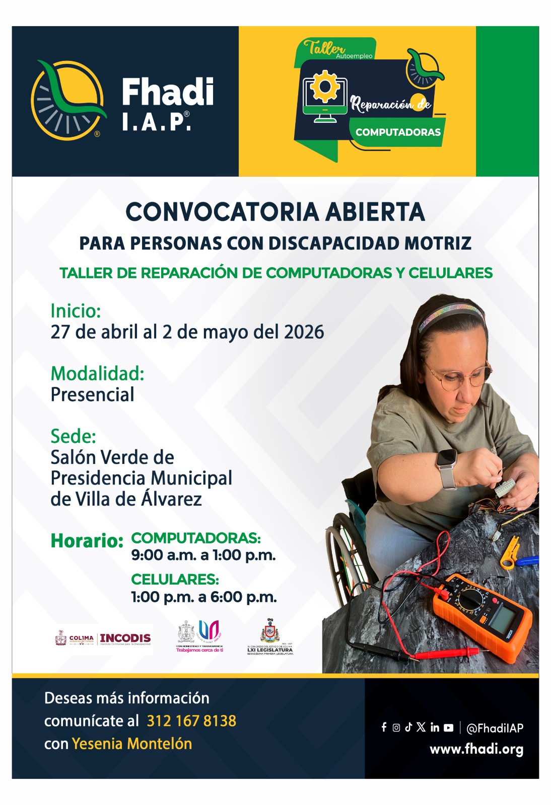 “Queremos invitar a la población que vive una condición de discapacidad motriz a que aproveche esta oportunidad de poder capacitarse en un oficio como técnico en reparación de celulares y computadoras, para que, además de ampliar sus conocimientos, sea también una opción de emprendimiento”, expuso Gutiérrez Andrade.