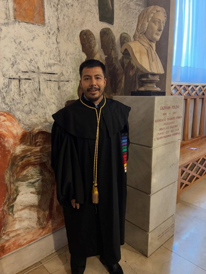 Como parte del convenio de Doble Grado a nivel doctorado entre el Doctorado en Ciencias Químicas de la Universidad de Colima y la Universidad de Padua, Italia, este miércoles 26 de noviembre recibió su grado el egresado Carlos Eduardo Macías Hernández, quien se doctoró por la UdeC y obtuvo, además, el título de Doctor en Scienze Molecolari – Indirizzo Scienze Farmaceutiche (Doctor en Ciencias Moleculares – Especialidad en Ciencias Farmacéuticas), en la institución italiana.