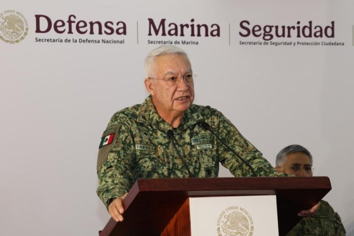 “Por instrucciones mías, el comandante de la 21 Zona Militar mantuvo una comunicación directa, permanente y continua con el alcalde Carlos Manzo Rodríguez”, subrayó el secretario Trevilla Trejo.