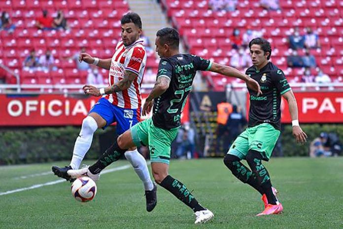 Jalisco.- Guadalajara y Club Santos igualaron a un gol en el partido correspondiente a la Jornada 13 de la LIGA BBVA MX realizado este domingo 4 de abril en el Estadio Akron.