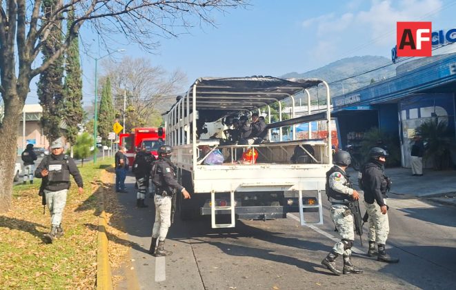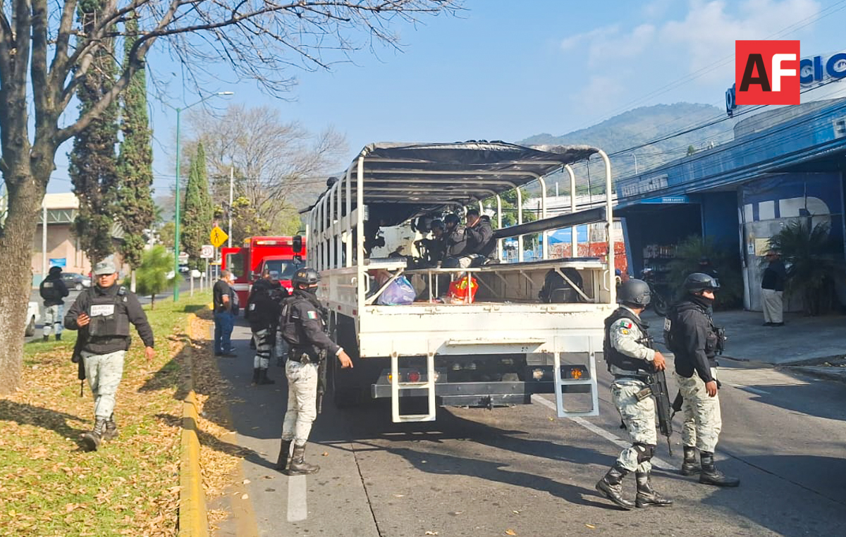 Uruapan, Michoacán.- 20 de noviembre de 2025.- Cinco elementos de la Guardia Nacional (GN) resultaron heridos luego de que el camión en el que se trasladaban fue impactado por una camioneta sobre la Avenida Chiapas, a unos metros del DIF Municipal de Uruapan.