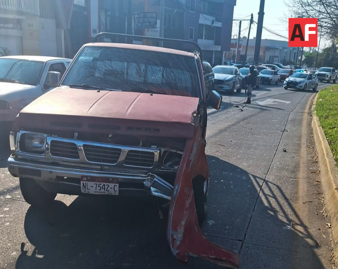 El accidente se registró la mañana de este jueves, cuando el camión de la Guardia Nacional con número económico 22591 circulaba con dirección de sur a norte y fue chocado por una camioneta Nissan, pick-up, con matrícula NL-7542-C, cuyo chofer trató de cambiar de carril sin percatarse de la proximidad de la pesada unidad.