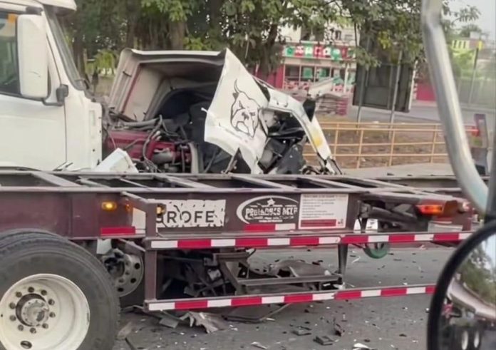 Manzanillo.- La mañana de este viernes 17 de abril, dos tractocamiones chocaron cerca del acceso norte al puerto de Manzanillo, dejando cuantiosos daños materiales, de acuerdo con fuentes policiales.