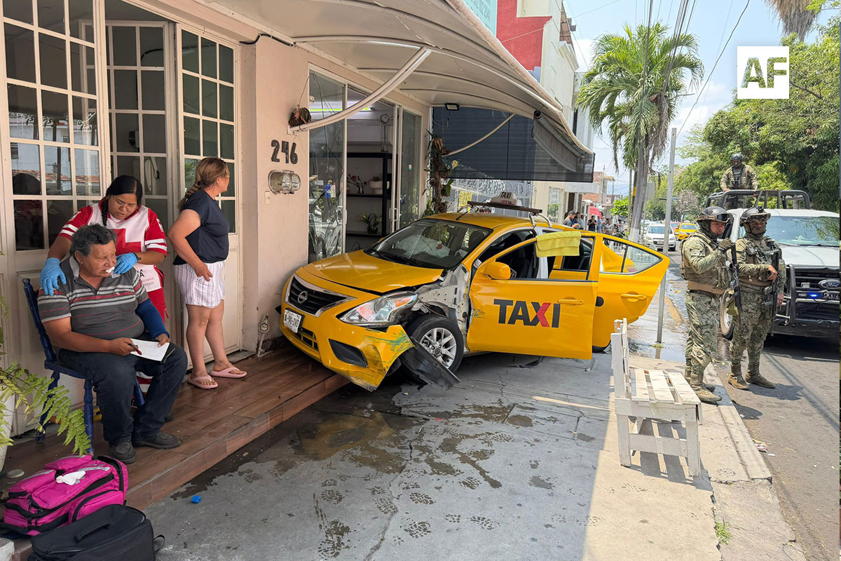 De acuerdo con la información, el taxi impactó a otro vehículo y posteriormente perdió el control, proyectándose contra un establecimiento.
