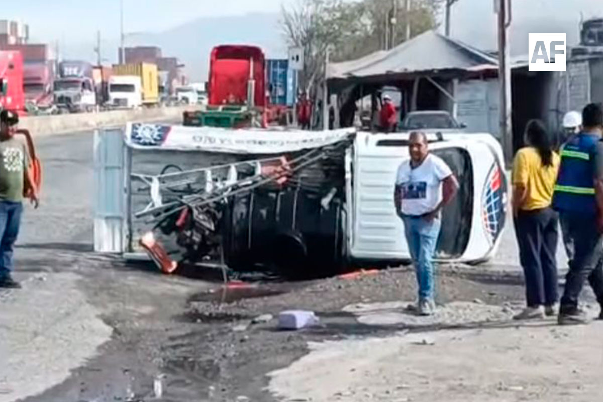 Tras el impacto, la camioneta quedó volcada sobre el asfalto.