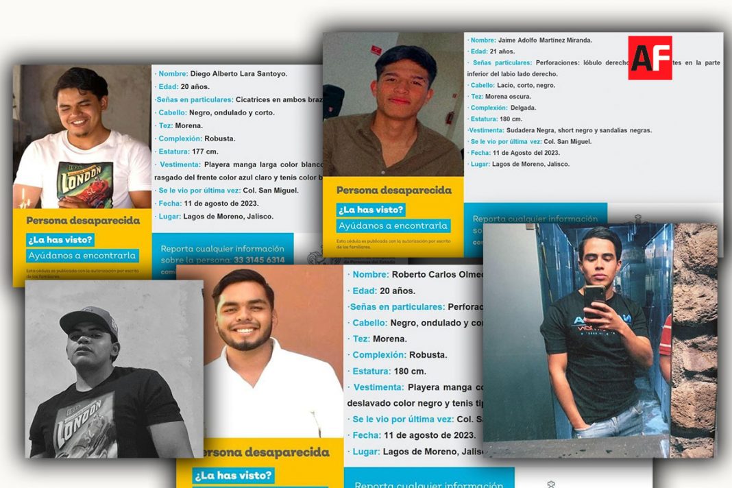 JALISCO.- La Fiscalía Especial en Personas Desaparecidas, de la Fiscalía del Estado de Jalisco, dio a conocer que continúa de manera ininterrumpida con los actos de investigación en gabinete y campo, en coordinación con diversas áreas de la Fiscalía Estatal, para lograr la localización de los cinco jóvenes desaparecidos en Lagos de Moreno el pasado viernes 11 de agosto.
