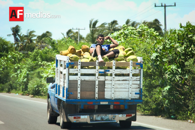 Colima.- Luego de la jornada laboral, que debió implicar el corte de cocos, un breve descanso a nadie le cae mal, en lo que se traslada el producto a donde será vendido.