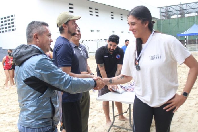 El director general del Instituto Colimense del Deporte (Incode), Alejandro Rodríguez Alvarado, encabezó la premiación de la Copa Volcán de balonmano de playa este domingo en la cancha de arena de la unidad deportiva “José María Morelos y Pavón”, de esta ciudad capital.