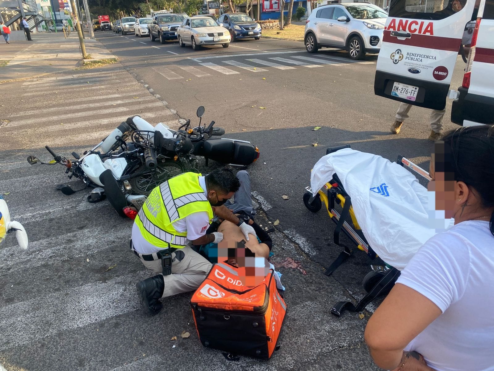 Tras el reporte del incidente, personal especializado del Centro Regulador de Urgencias Médicas (CRUM) se desplazó al sitio para realizar la valoración prehospitalaria. Debido a la naturaleza del choque, ambos tripulantes presentaron heridas de consideración que pusieron en riesgo su salud, lo que derivó en maniobras de estabilización y su posterior movilización a un centro médico local.