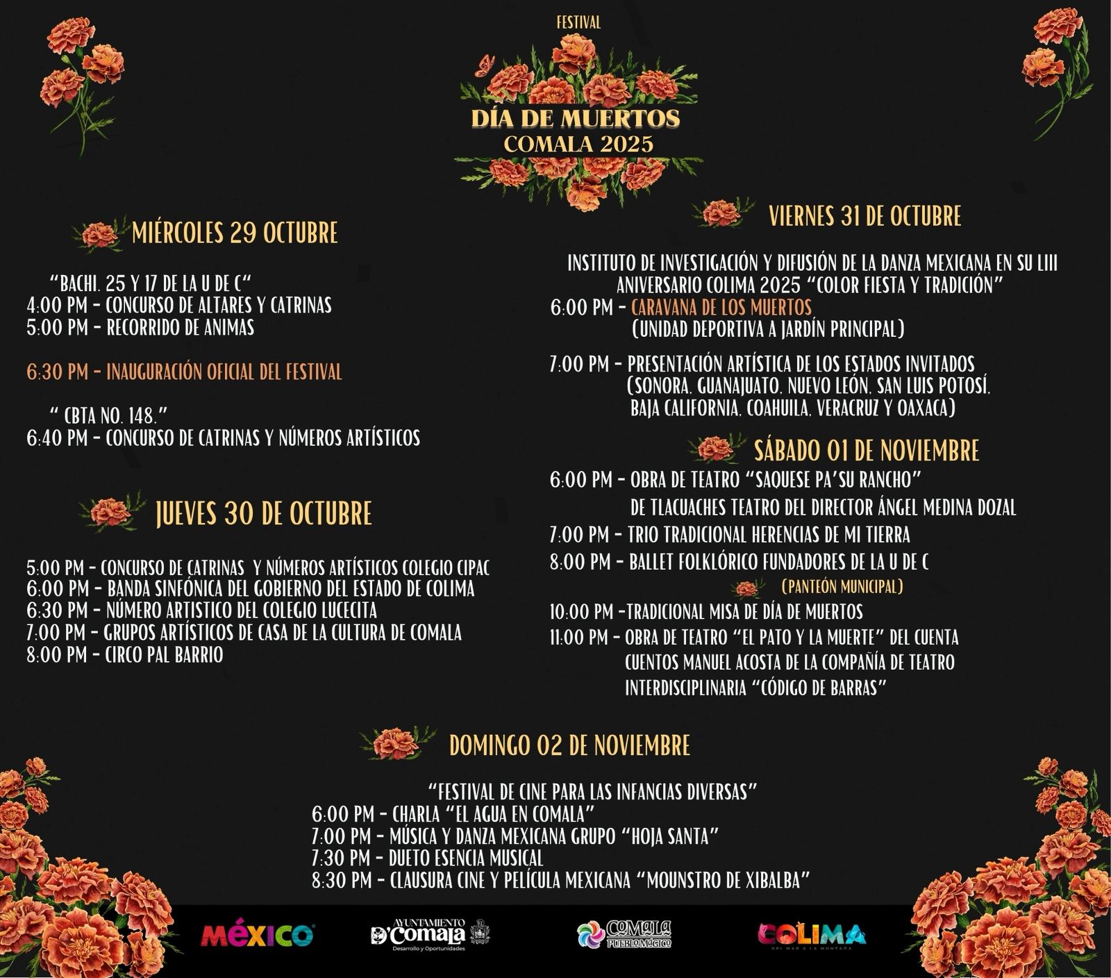“Porque en Comala, cada flor encendida cuenta una historia… y cada historia merece ser compartida”, subrayó la autoridad municipal, invitando a la población a sumarse con respeto, creatividad y espíritu festivo.