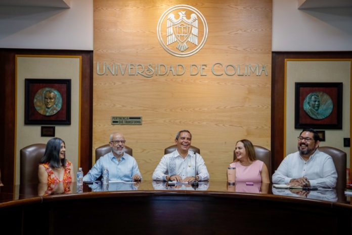 Como parte de las actividades de la Feria del Libro (FELIB) Altexto 2026, la mañana de este lunes 27 de abril, tuvieron una reunión de trabajo el rector de la Universidad de Colima, Christian Torres Ortiz Zermeño y el rector de la Universidad Autónoma de Aguascalientes (UAA), Juan Carlos Arredondo Hernández. La UAA es la universidad invitada a esta feria de los libros.