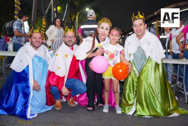 Niñas y niños se tomaron la foto con los Tres Reyes Magos, esto en el set fotográfico instalado en la Zona DIF.