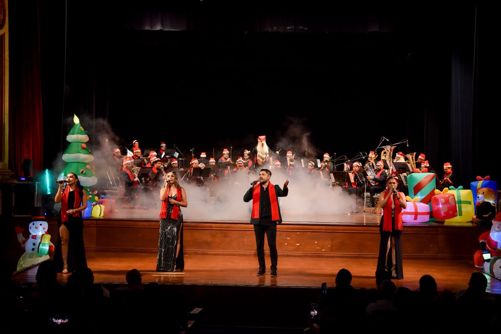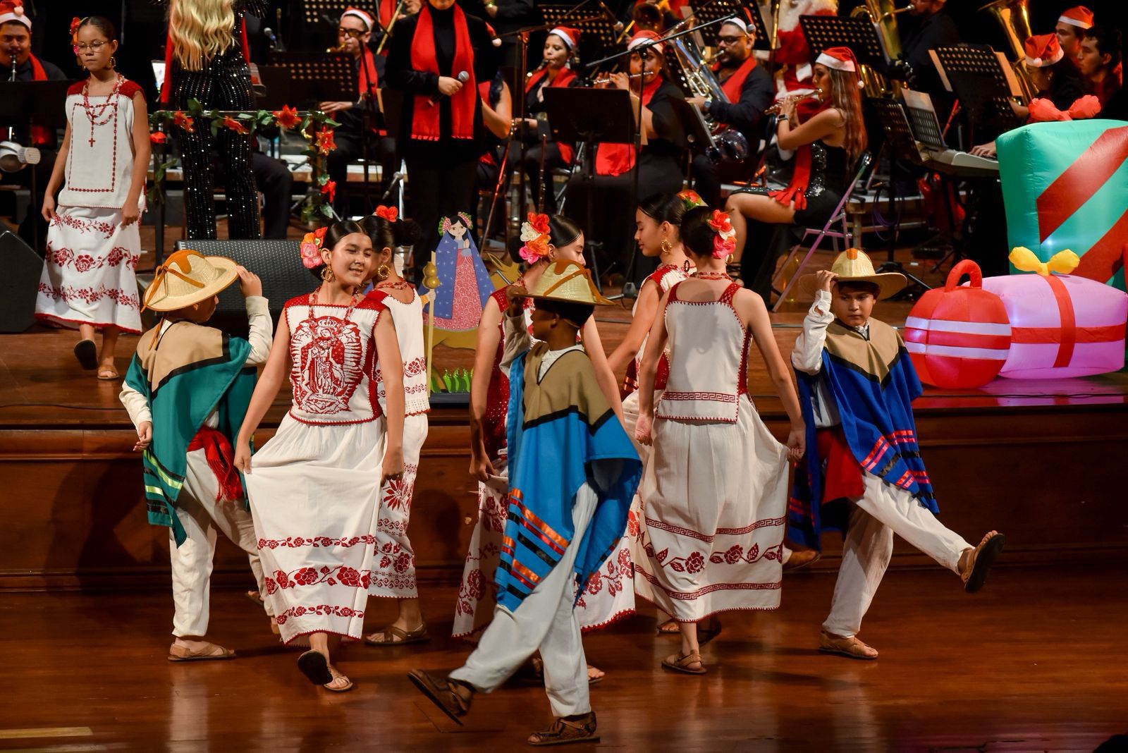 El espectáculo que permitió disfrutar al público de piezas musicales como ‘Christmas festival’, ‘Sleigh ride’ y ‘Noche de paz’, contó con la participación de las agrupaciones de la Secretaría de Educación y Cultura: el Ballet Folklórico Infantil y el Coro Infantil y Juvenil, dirigidos por Cristian Azael y Alejandra Espino, respectivamente. Además, cantantes como Gerardo Robles, Jazmín Zavala, Alelí López y Yunuén Cortés acompañaron algunas de las melodías.